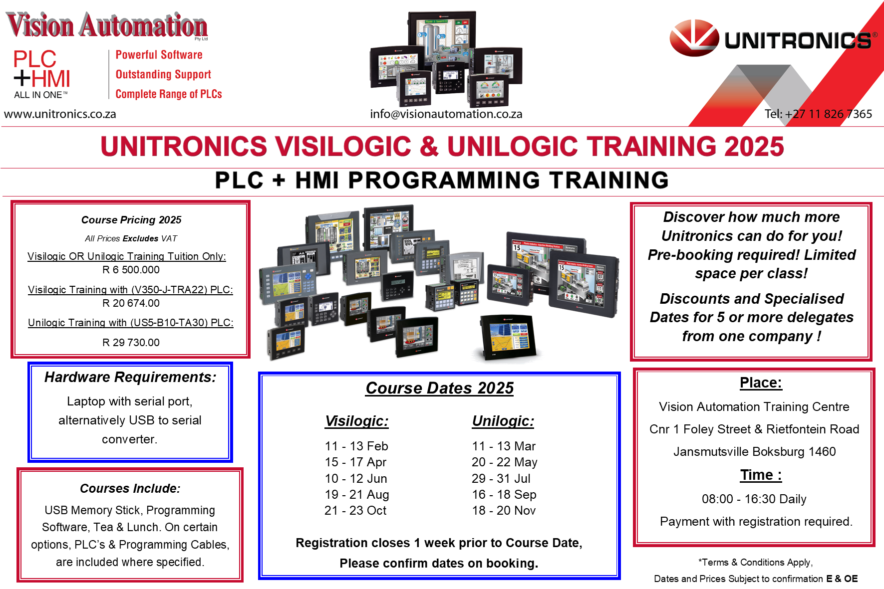 To secure your spot in the training course, please download the registration form and send it to training@visionautomation.co.za